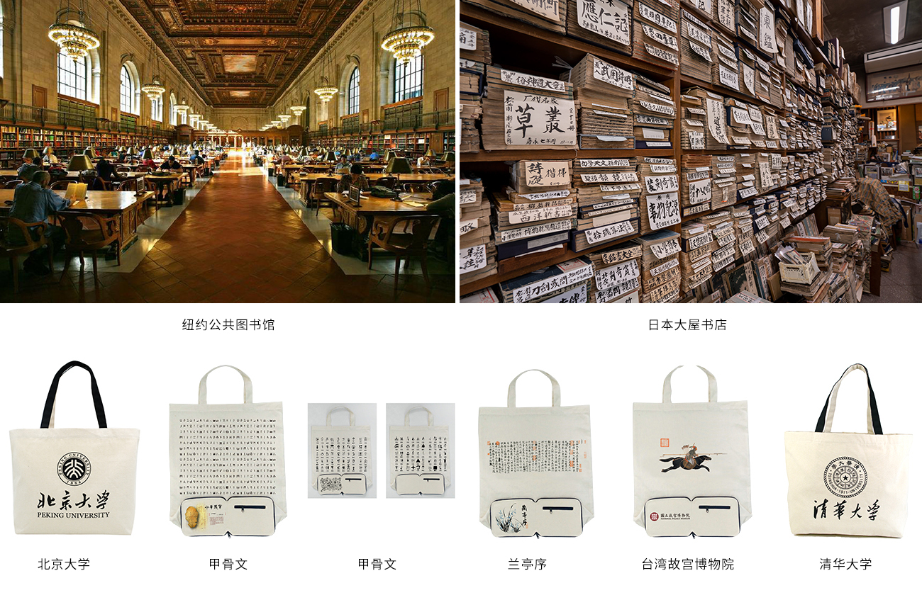 在紐約公共圖書館、日本大屋書店、清華大學(xué)、北京大學(xué),帆布包已經(jīng)成為一種文創(chuàng),深深吸引著來此旅游的世界各地的人們。